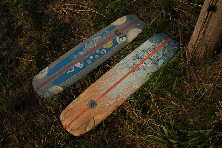 The Bamboo Purro consist of bamboo and birch veneers as well as glass fabric. The graphics are hand painted on the bottom side