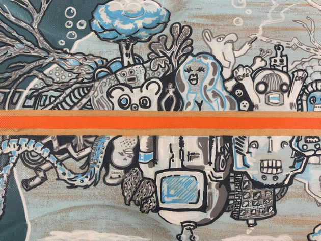 Fishshredder is the longest of Marcel's Sk8-Shapes decks. Initially designed to be a massive pintail, it's been modified to include a useful kick tail. This "Beluga" shaped board has a peaceful, quite chubby, cheerful and sympathetic style.